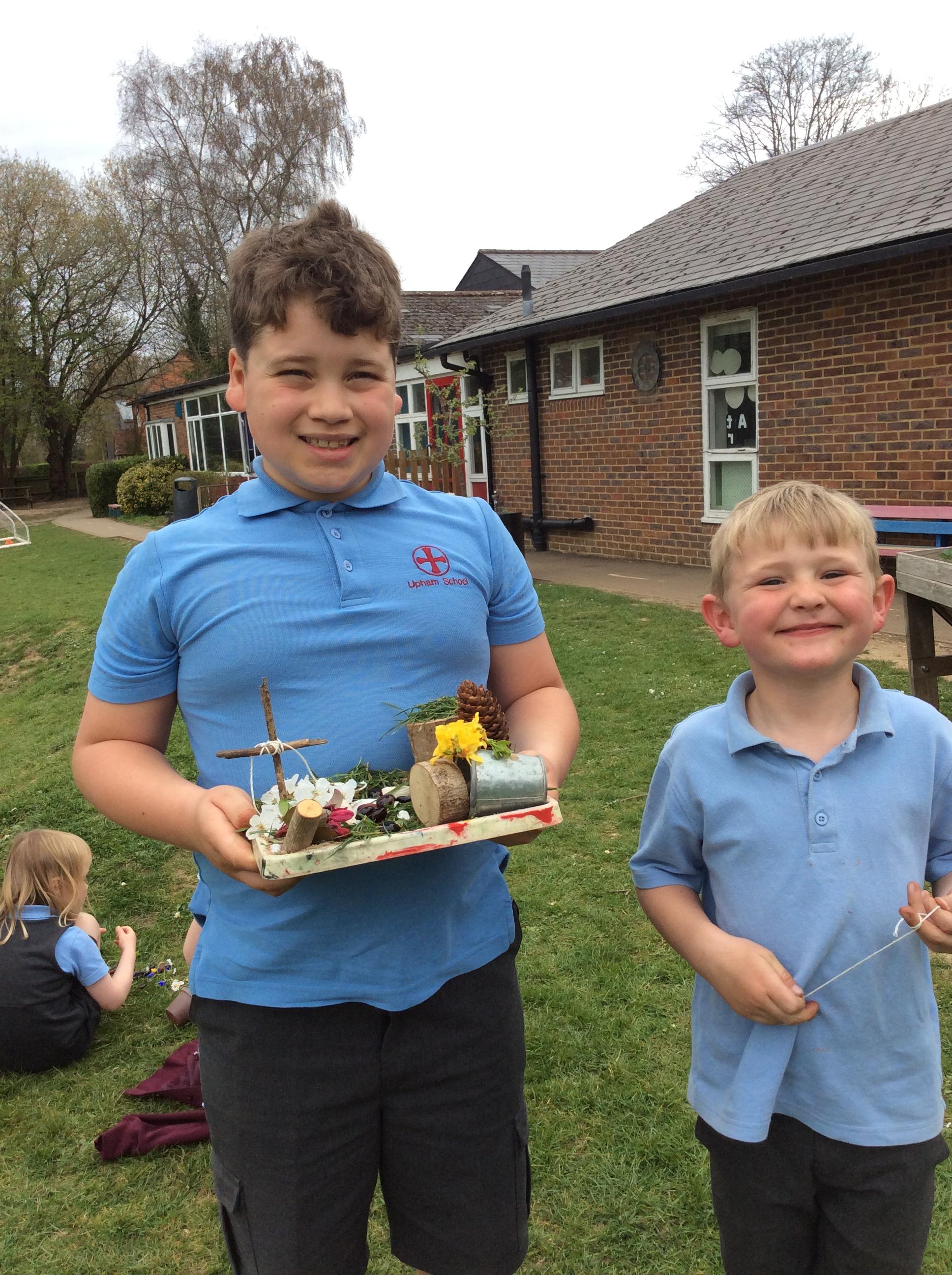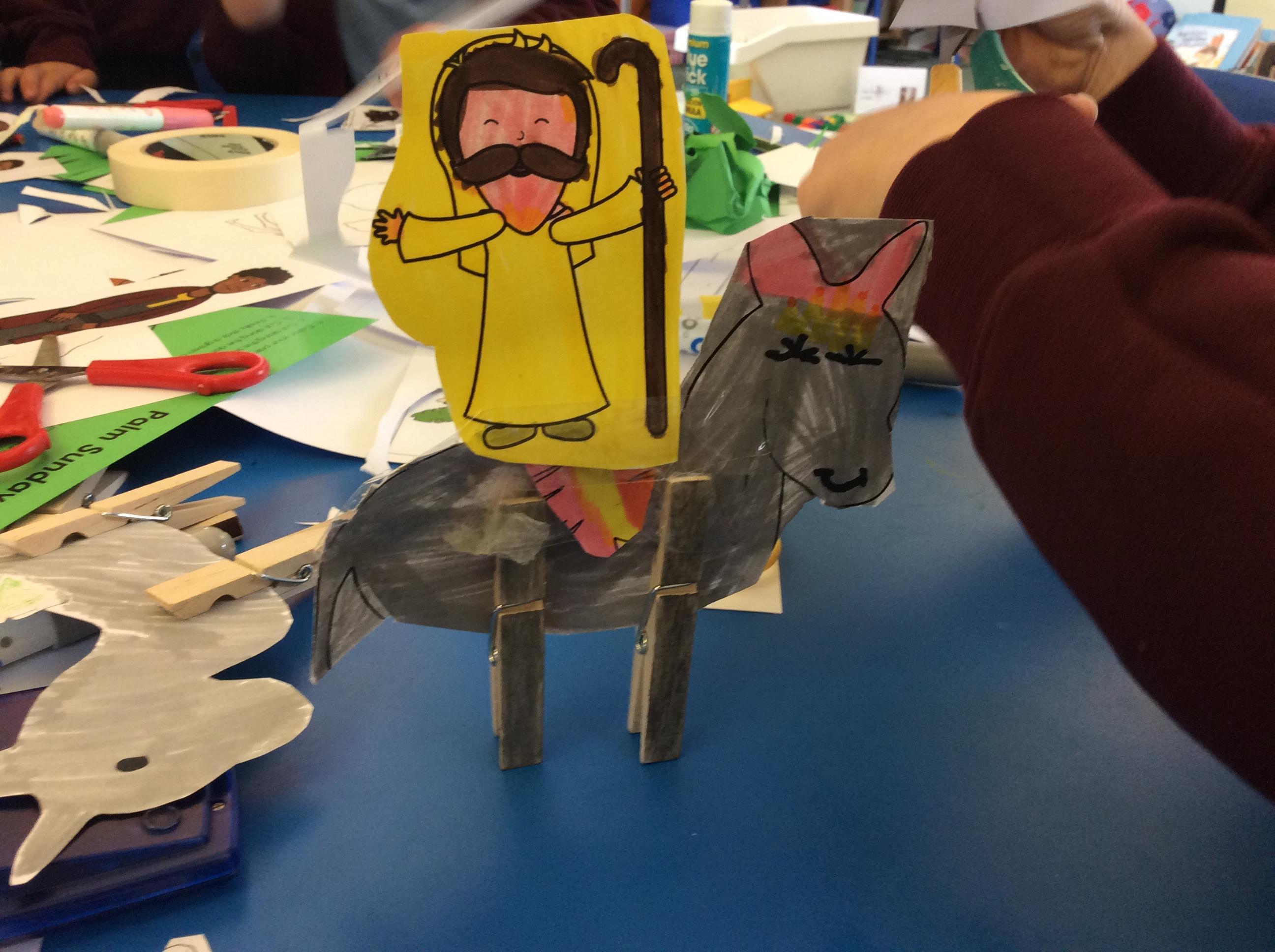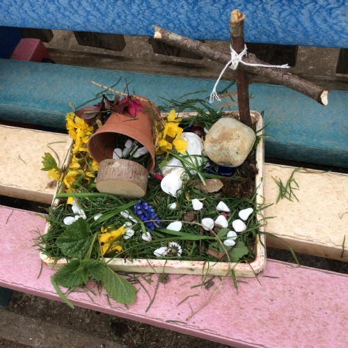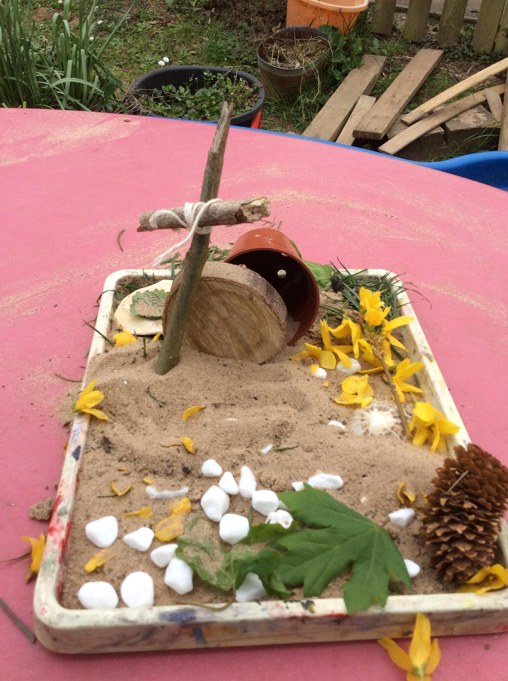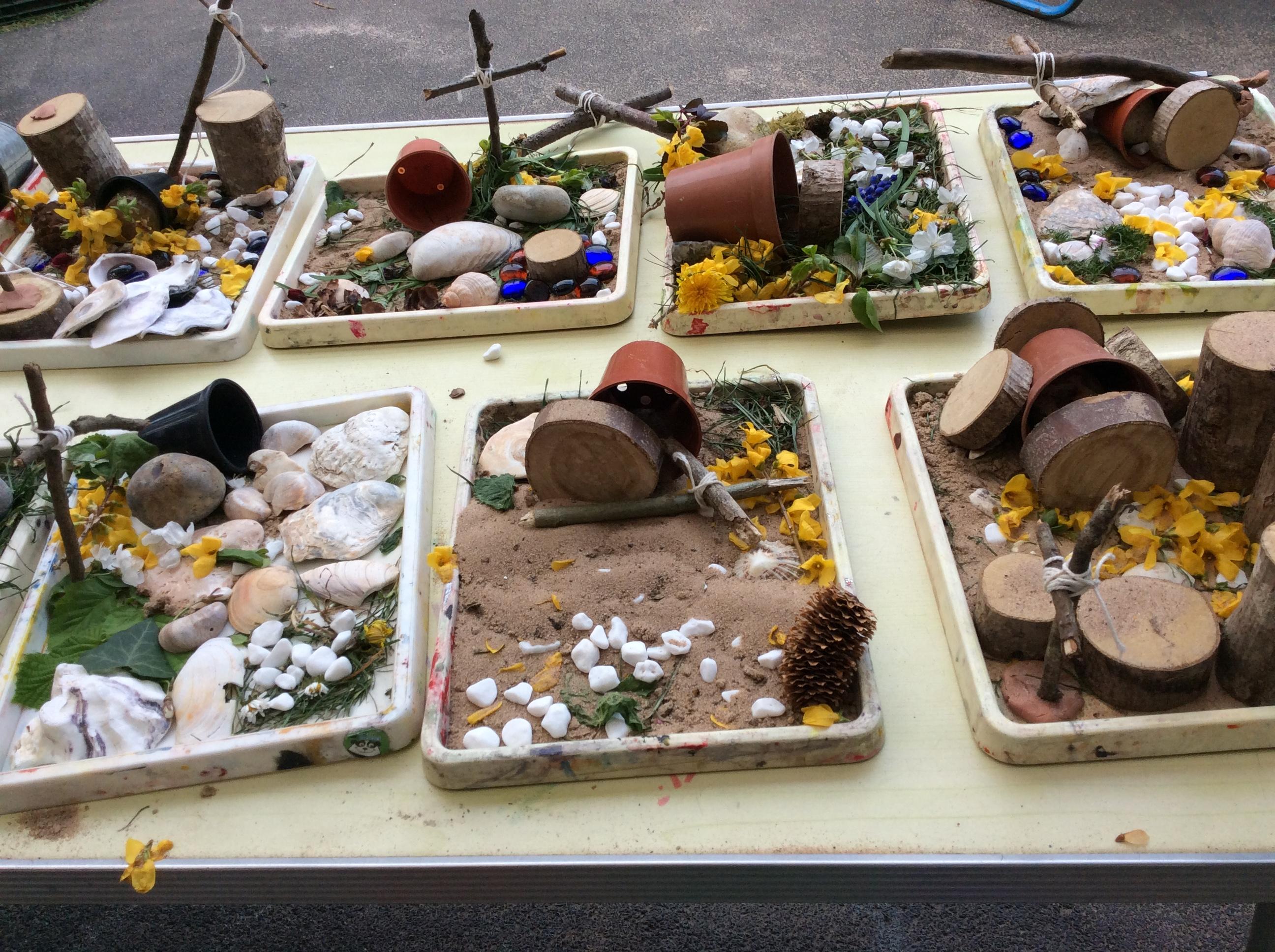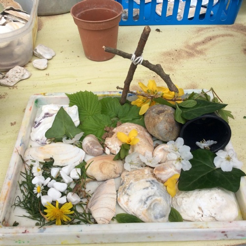 The children have been learning about the Easter story and in particular about the symbol of the cross and why a cross is included in an Easter garden.  They acted out the story of Palm Sunday.