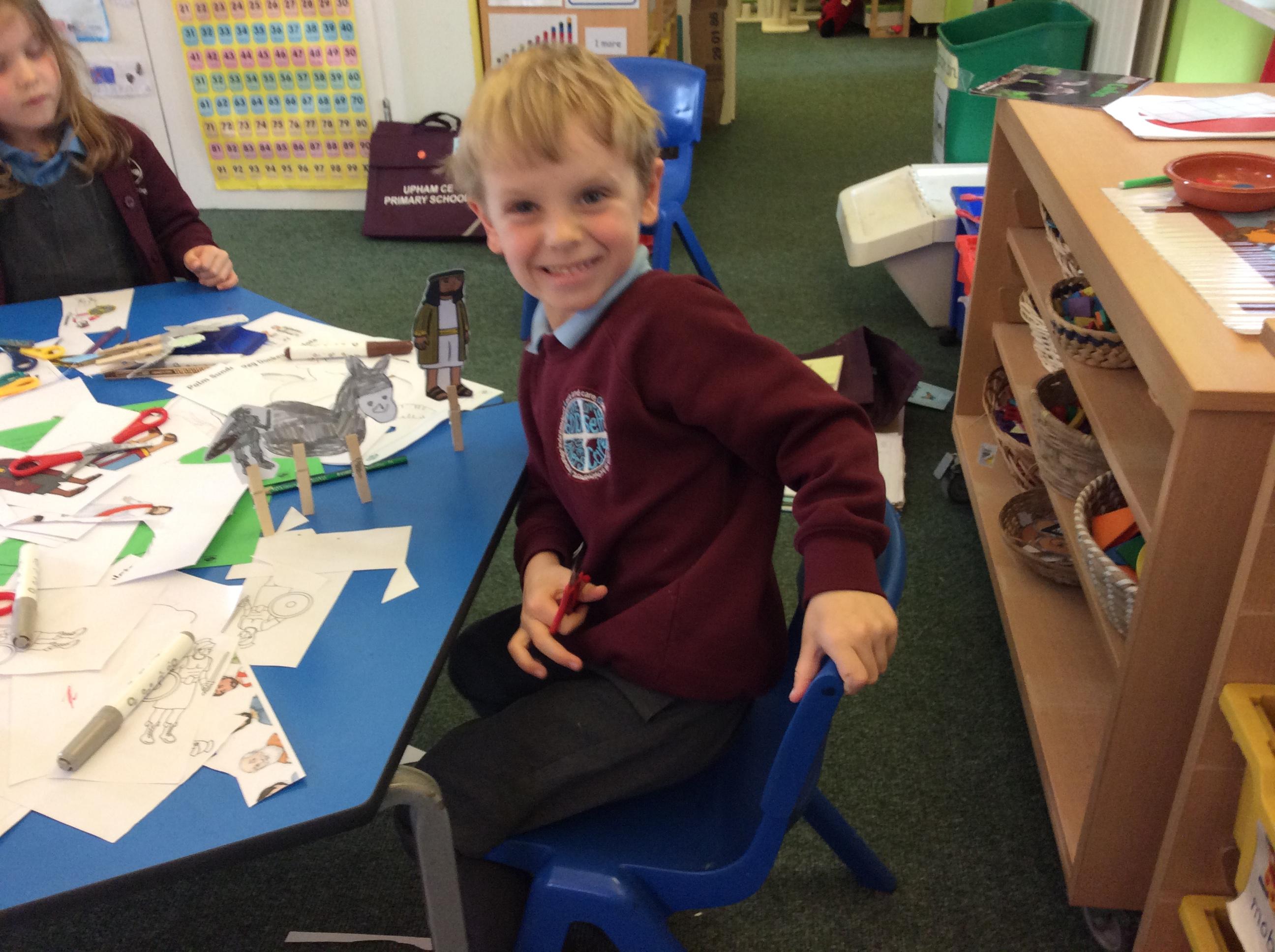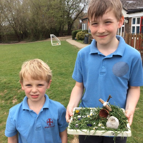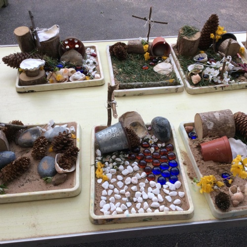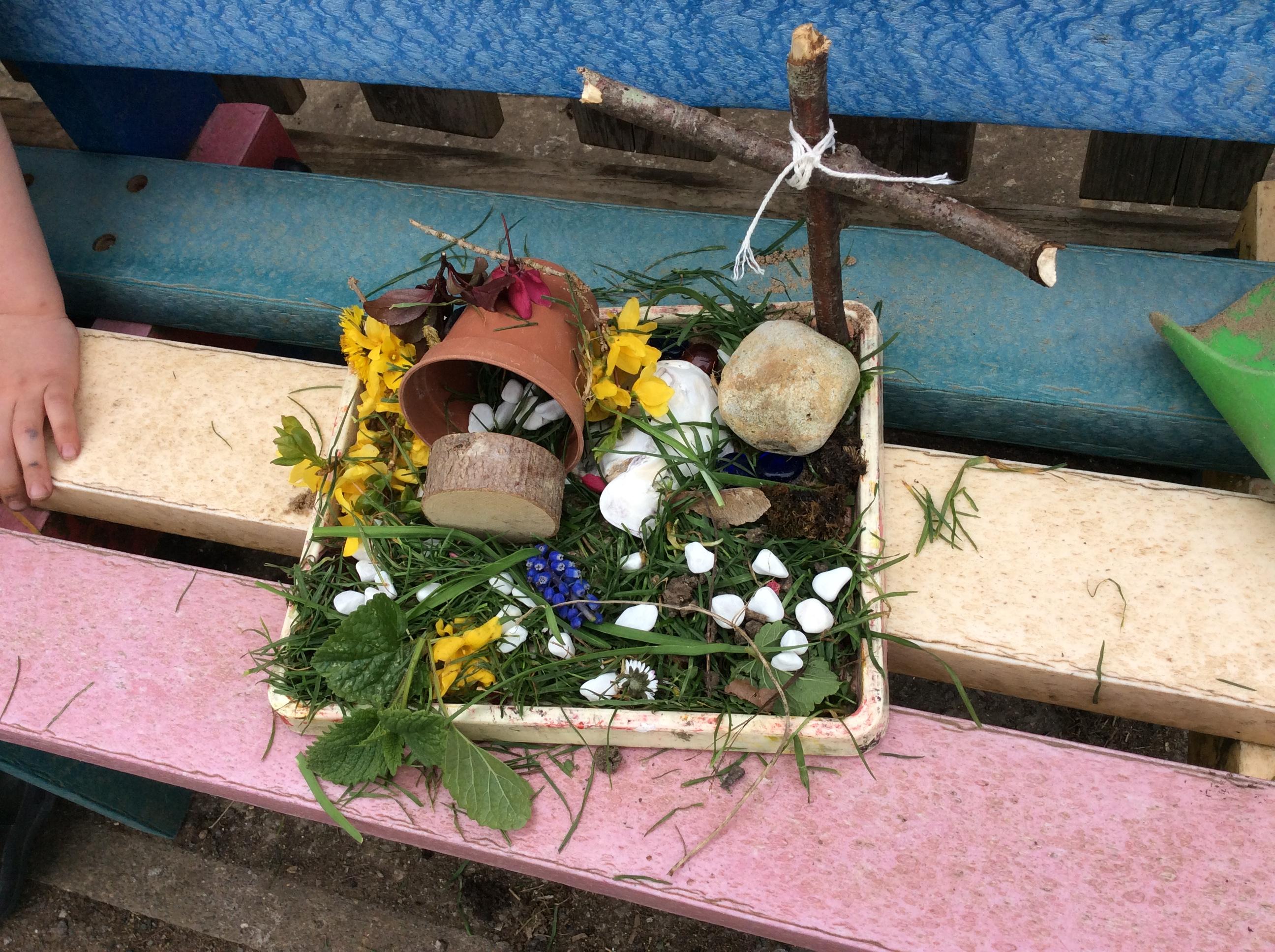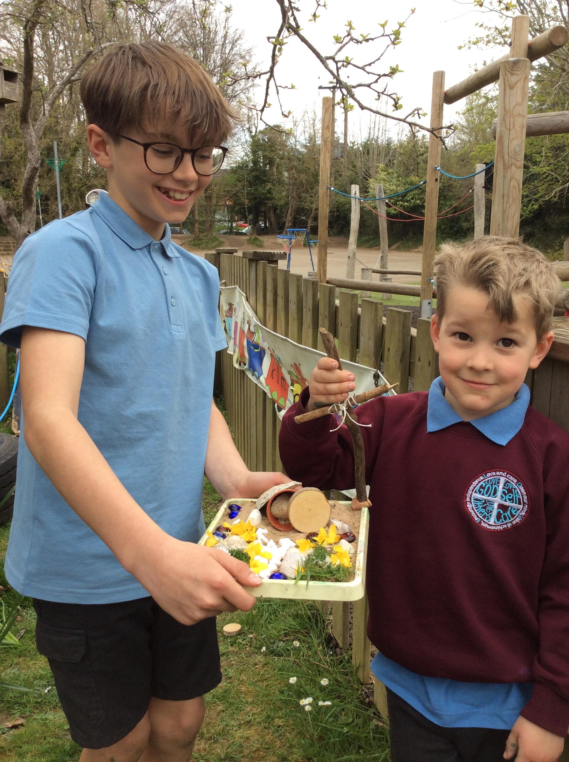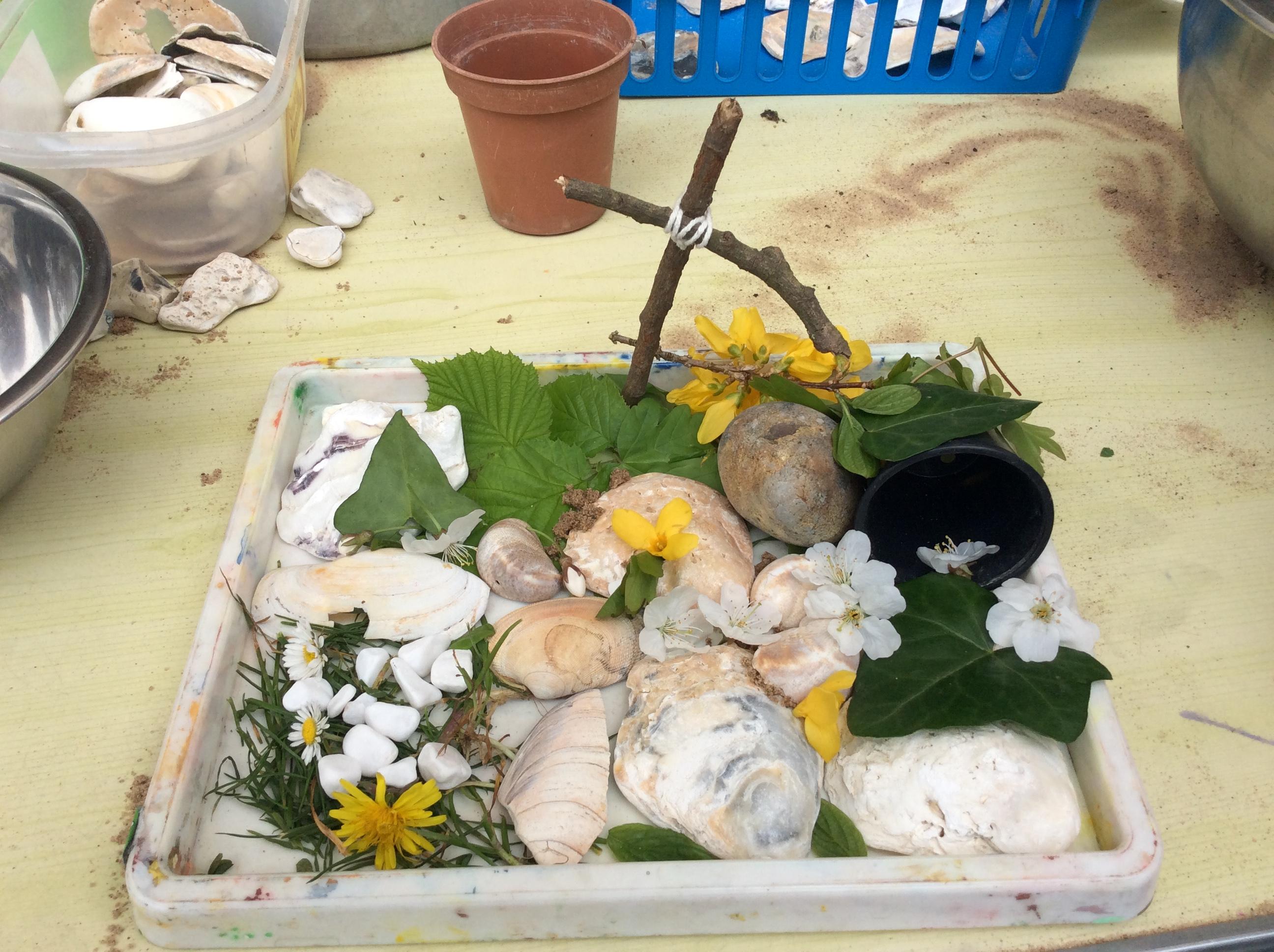The children have been learning about the Easter story and in particular about the symbol of the cross and why a cross is included in an Easter garden.  They acted out the story of Palm Sunday.