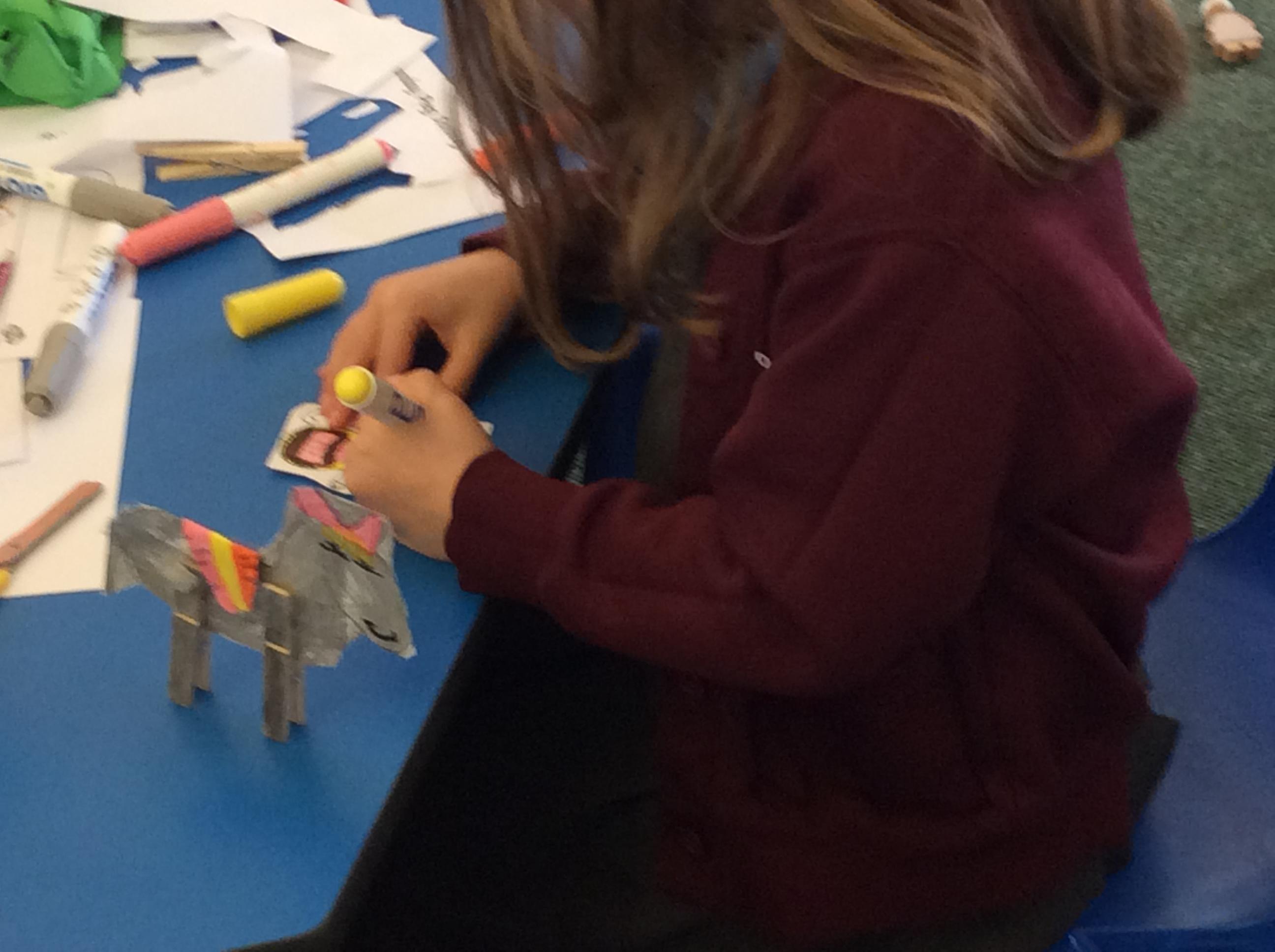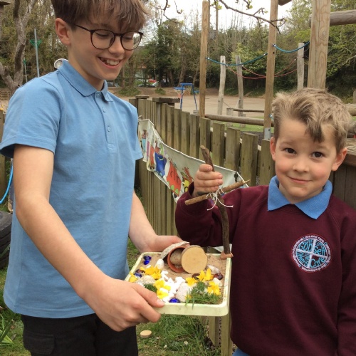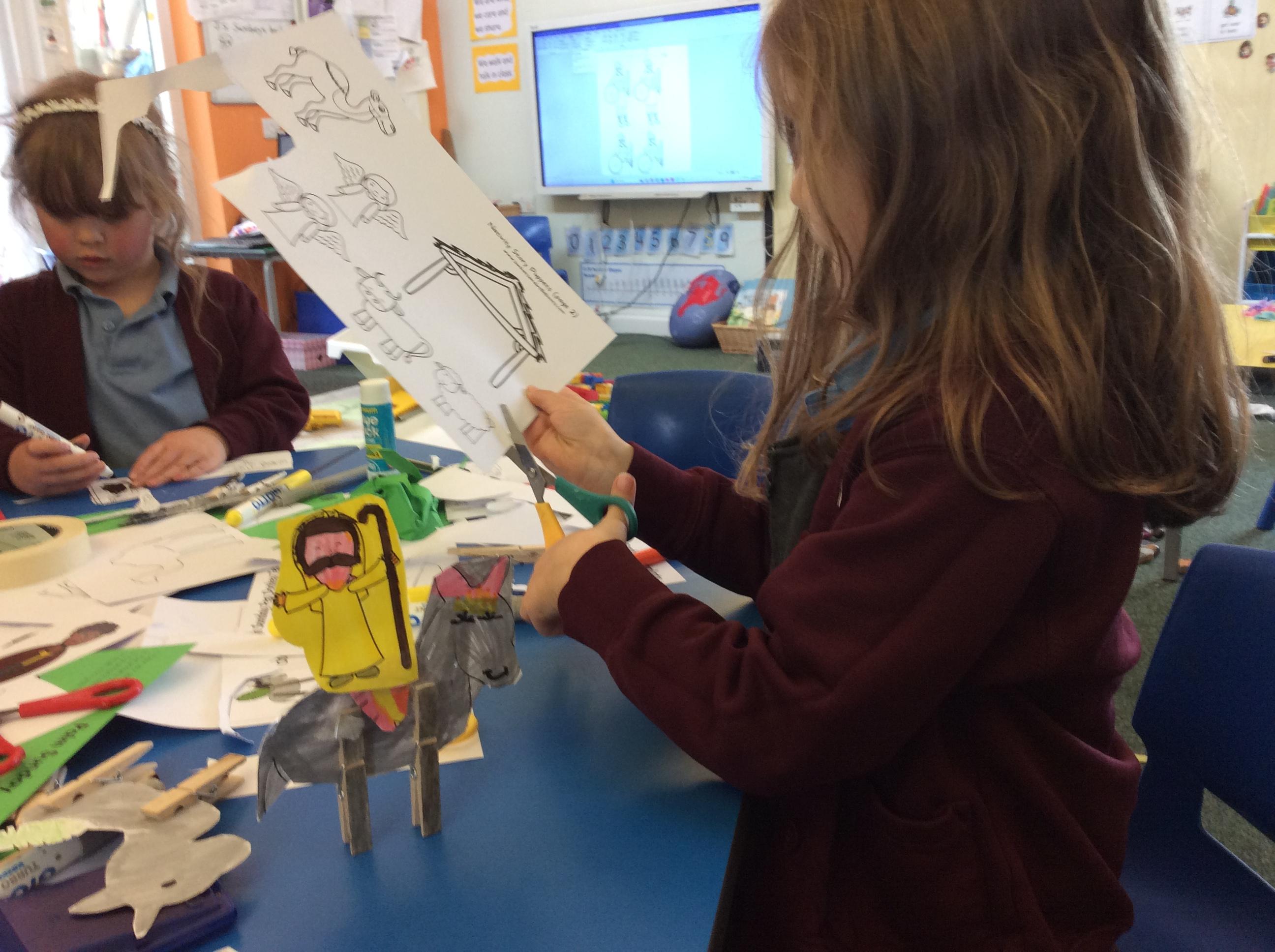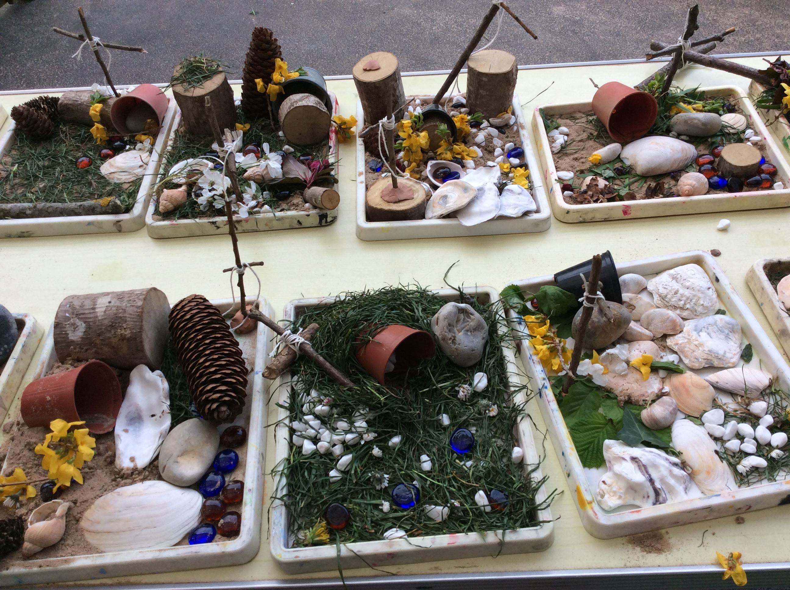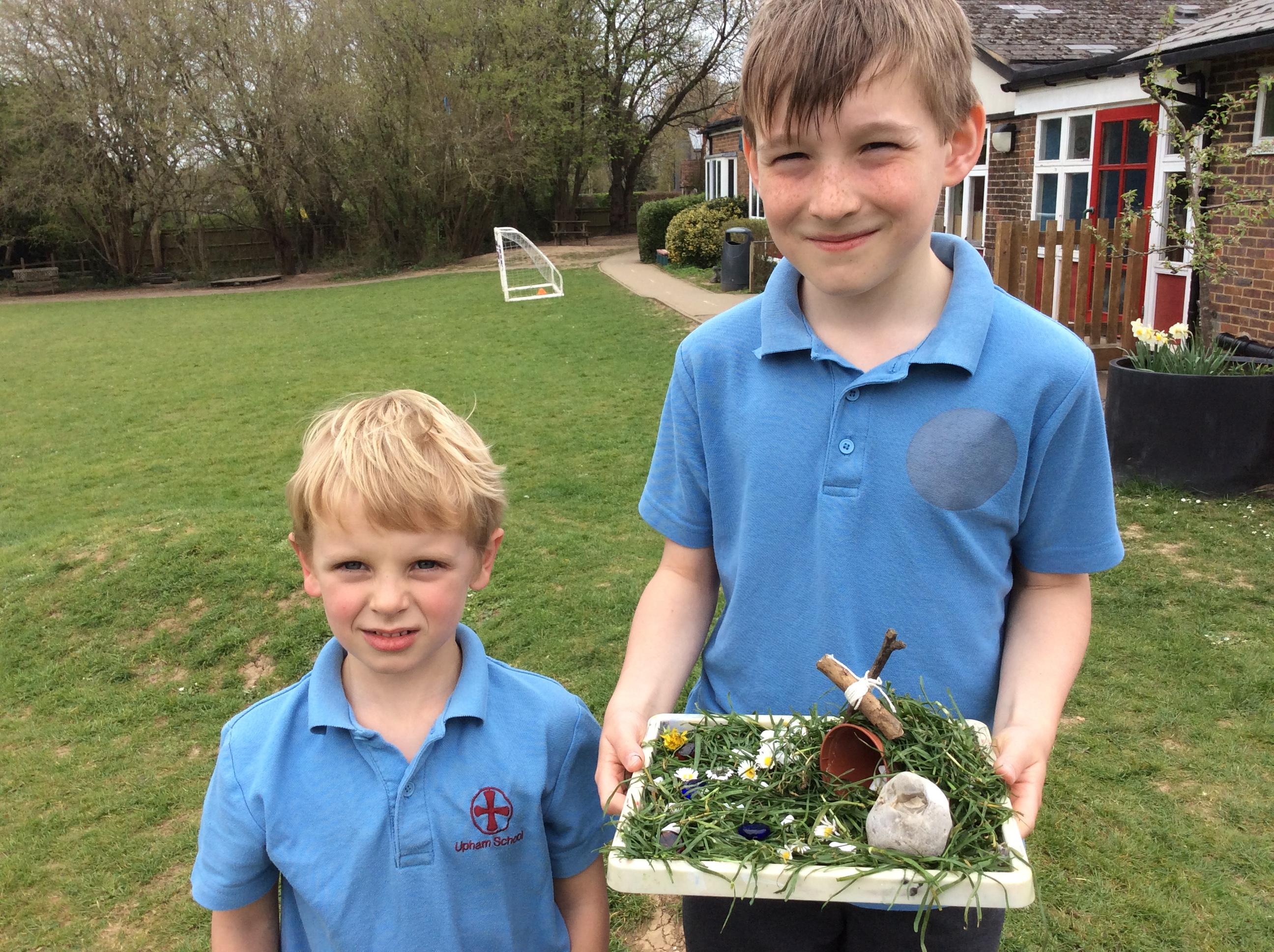 The children have been learning about the Easter story and in particular about the symbol of the cross and why a cross is included in an Easter garden.  They acted out the story of Palm Sunday.