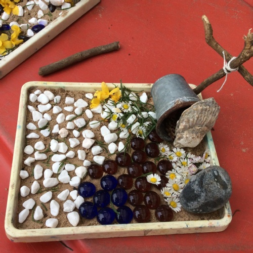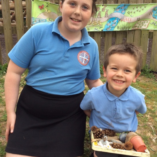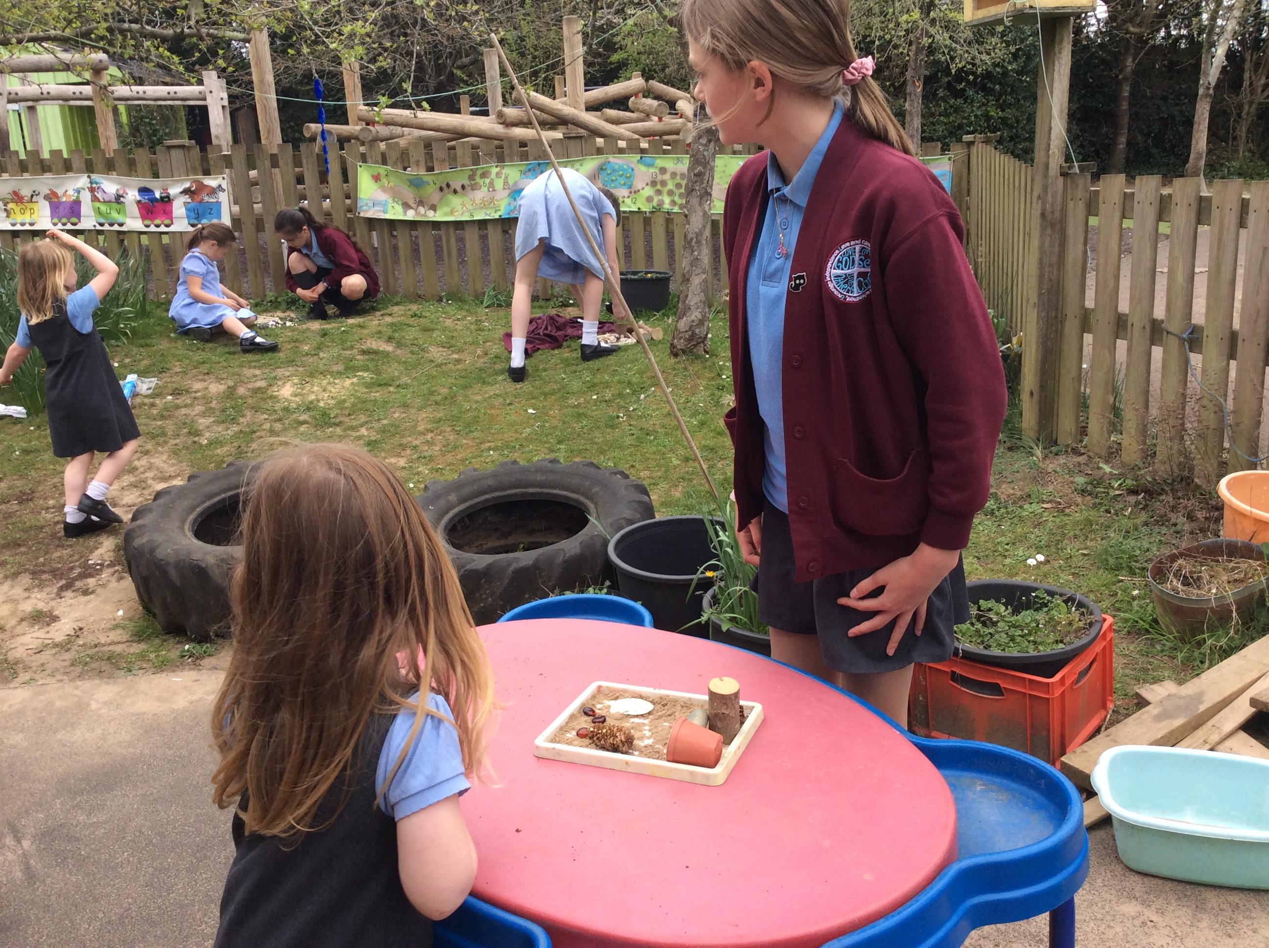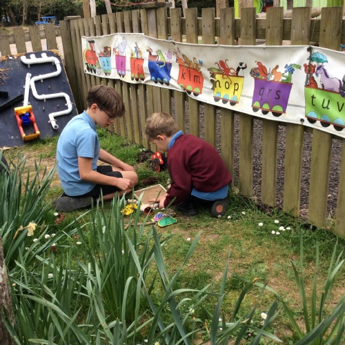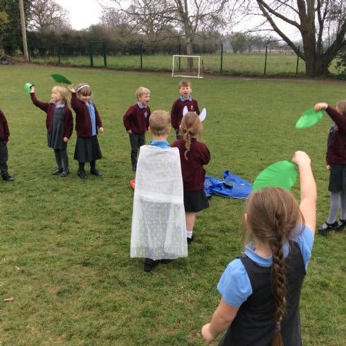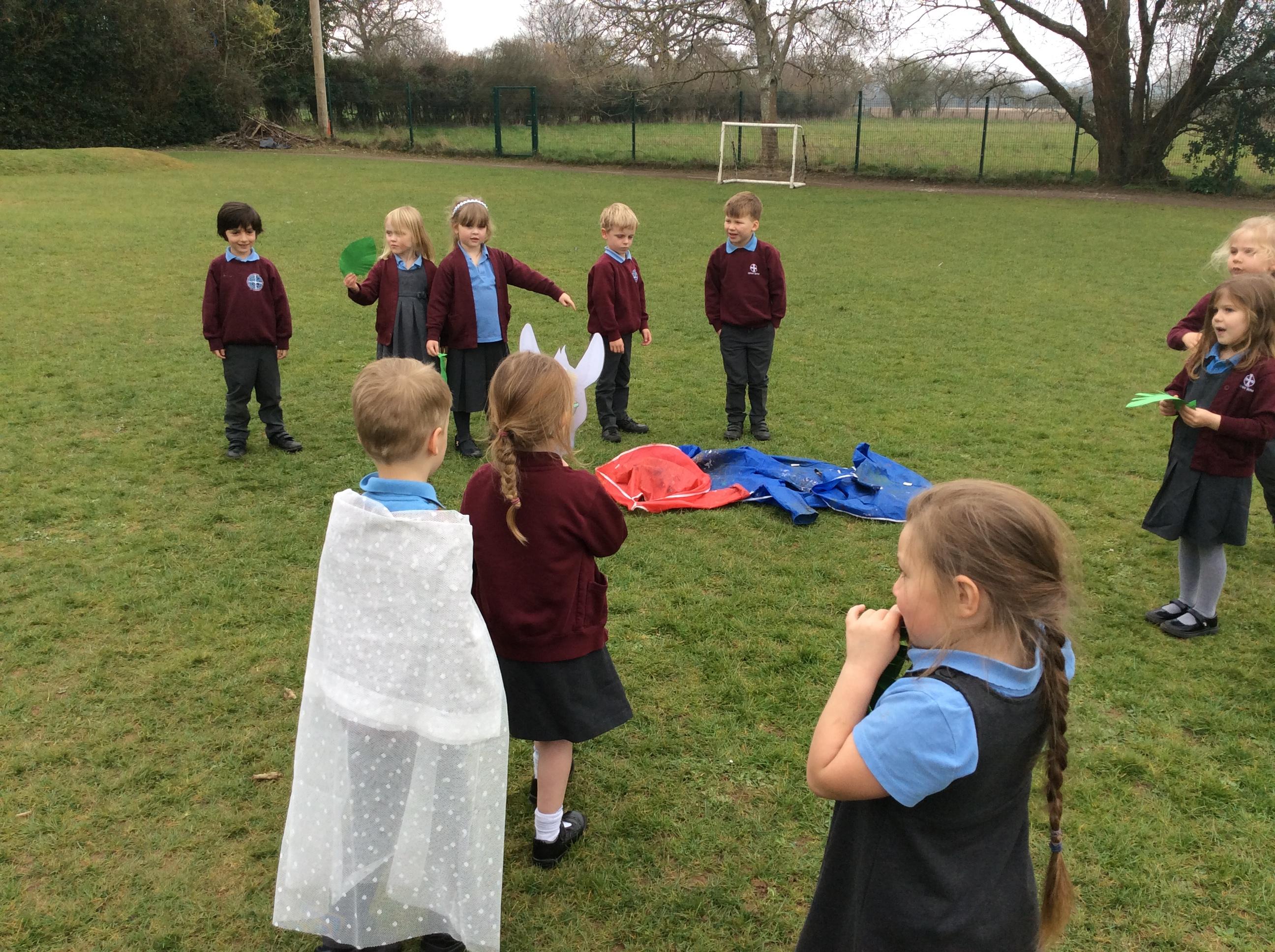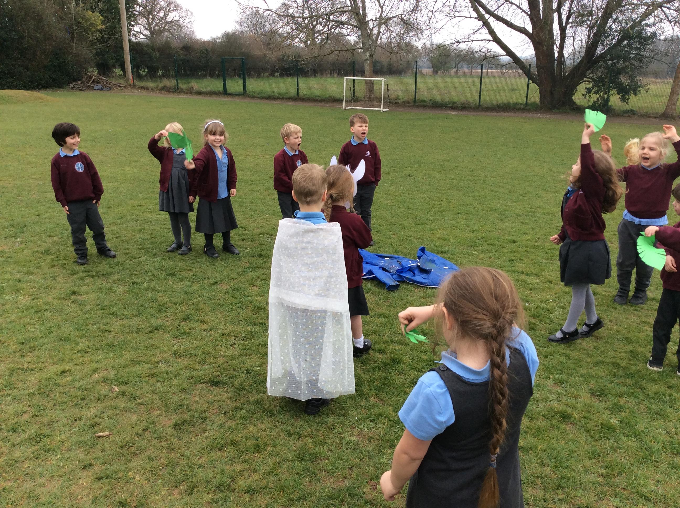 The children have been learning about the Easter story and in particular about the symbol of the cross and why a cross is included in an Easter garden.  They acted out the story of Palm Sunday.