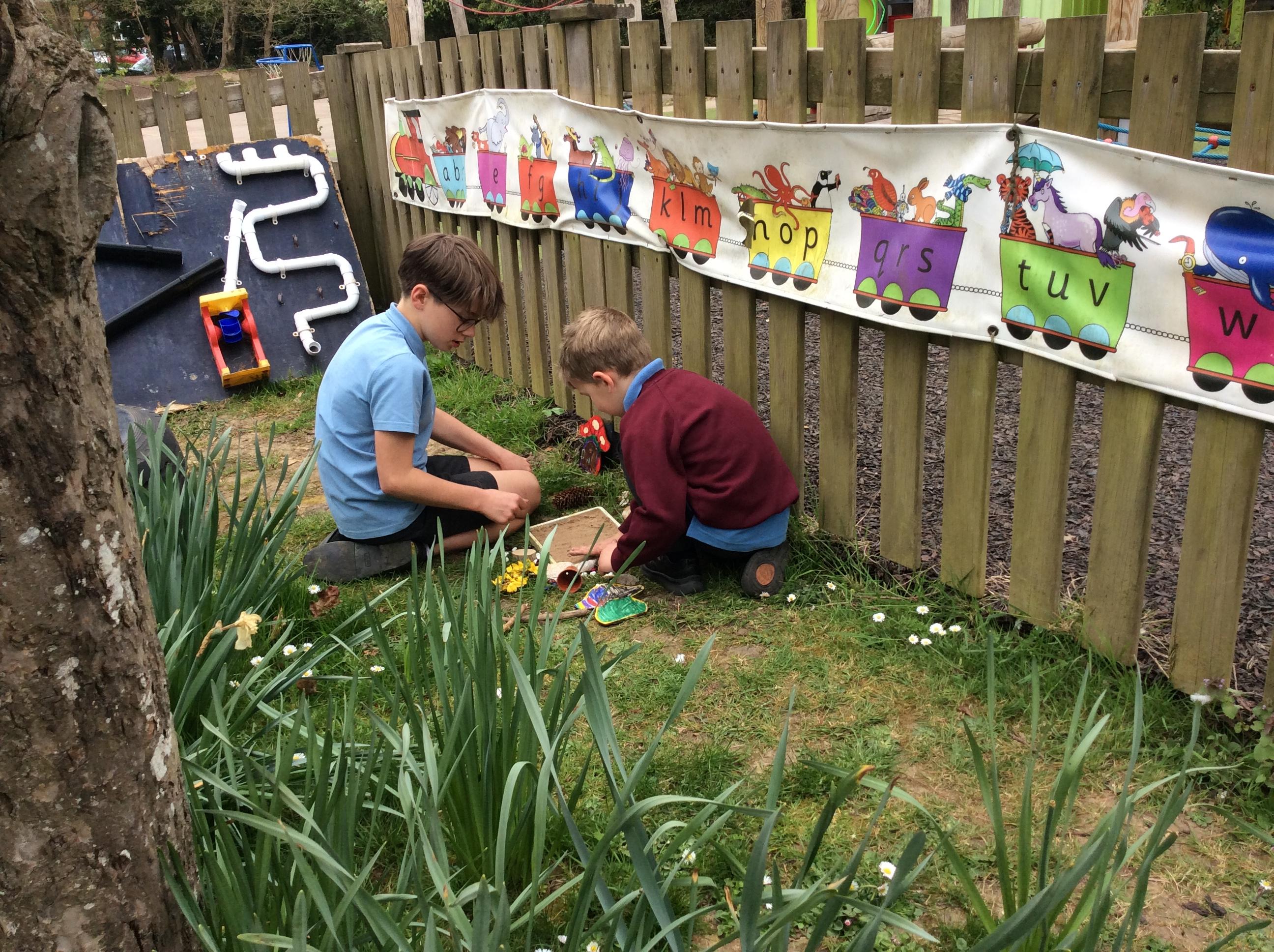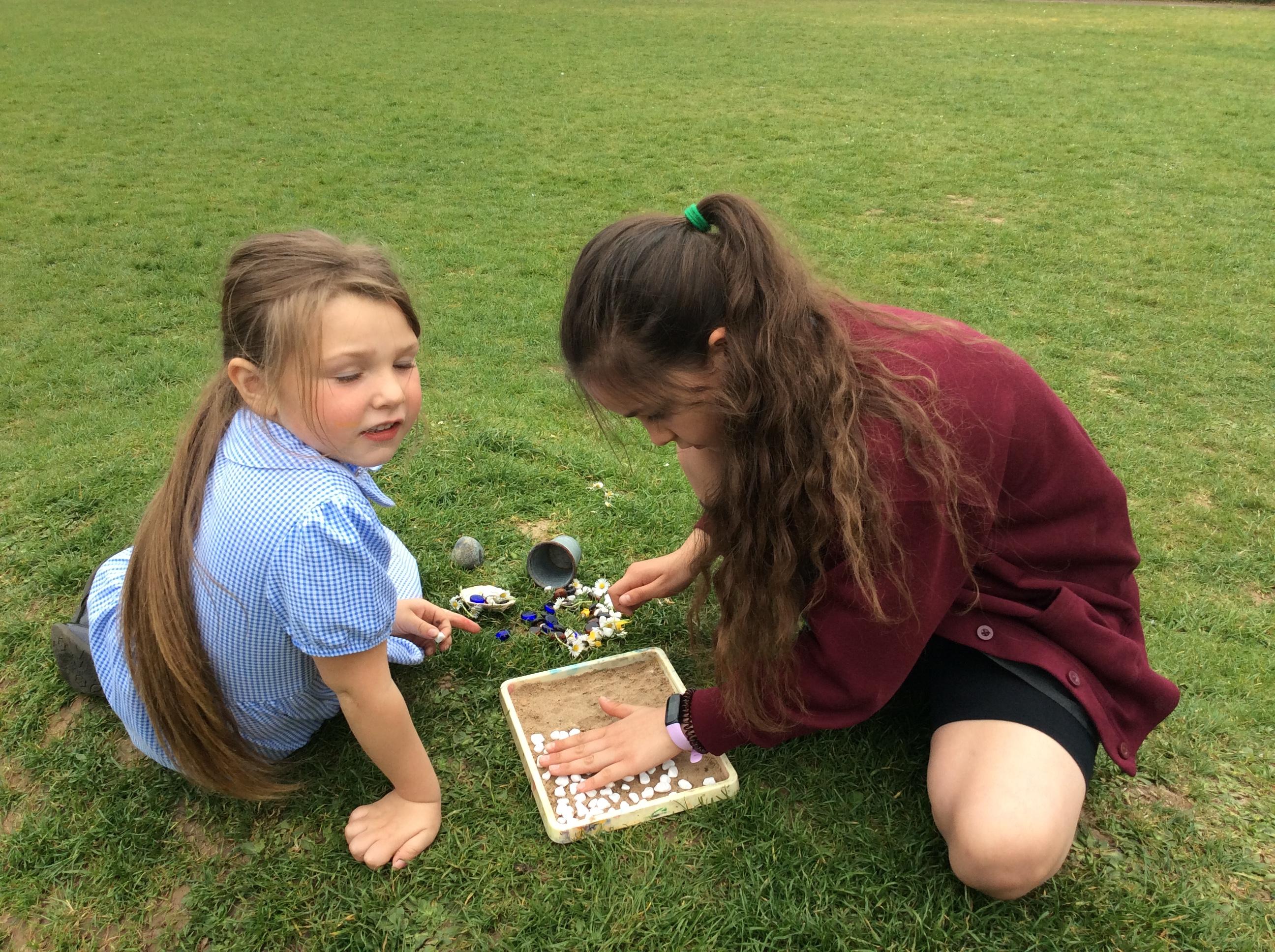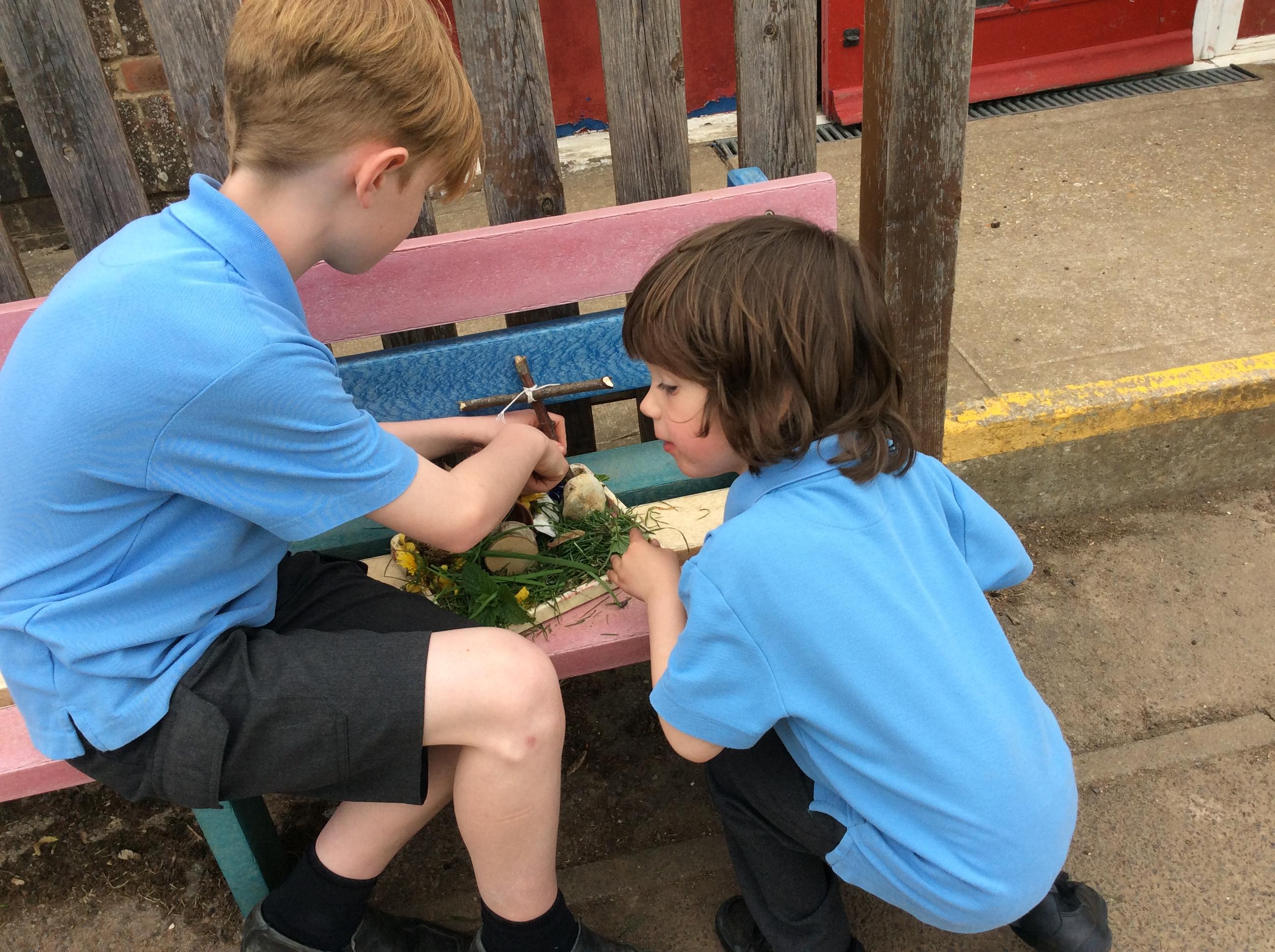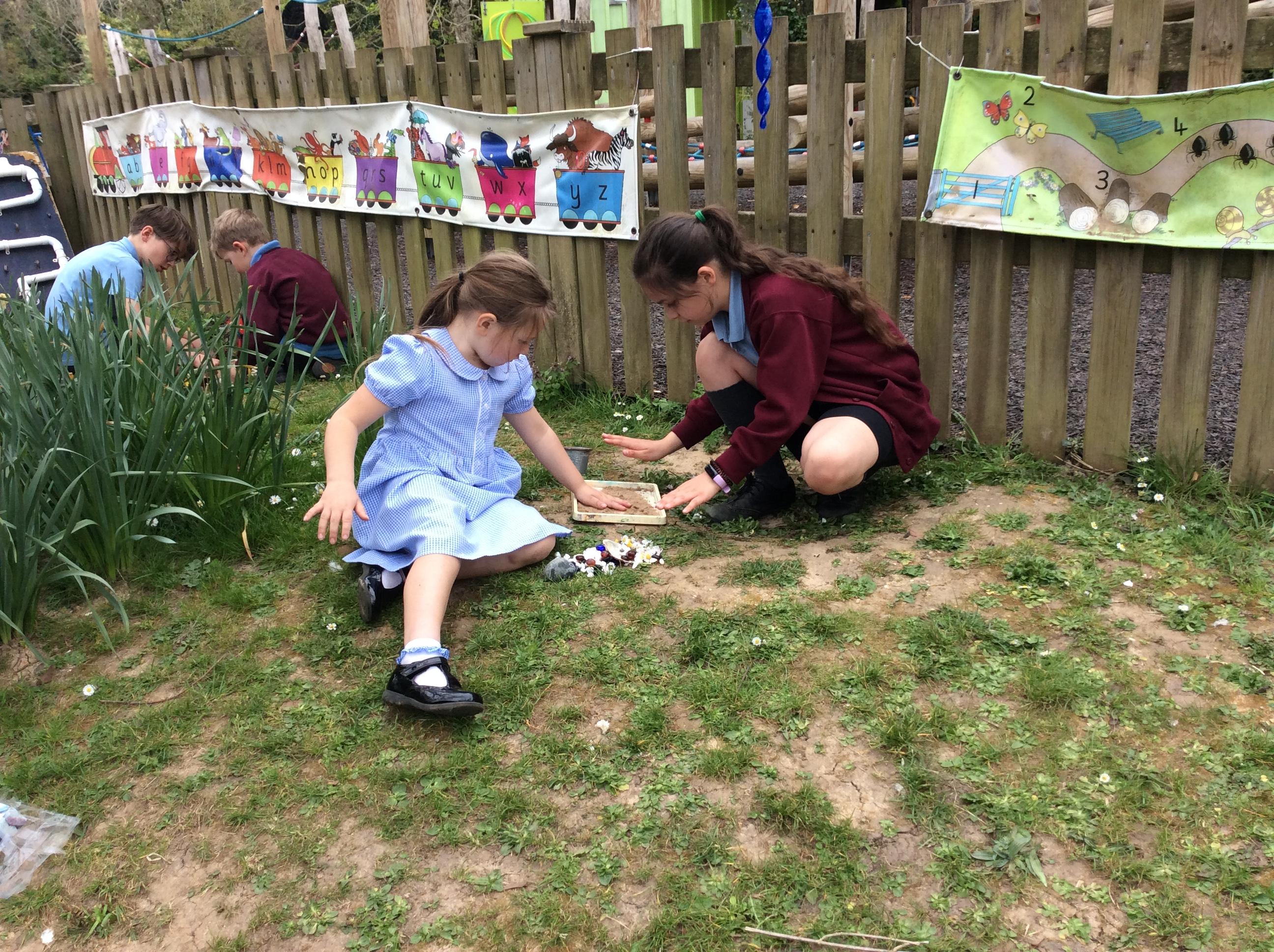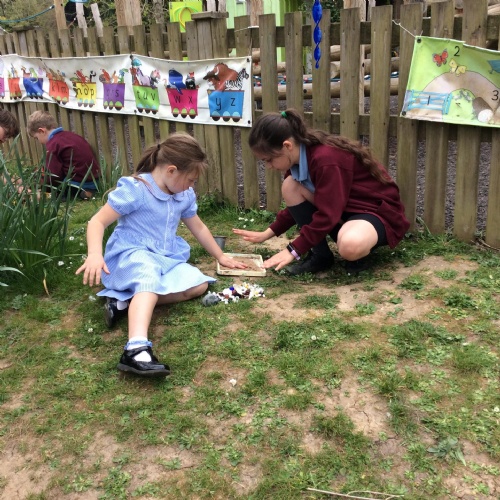 The children have been learning about the Easter story and in particular about the symbol of the cross and why a cross is included in an Easter garden.  They acted out the story of Palm Sunday.