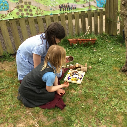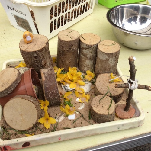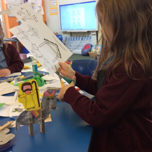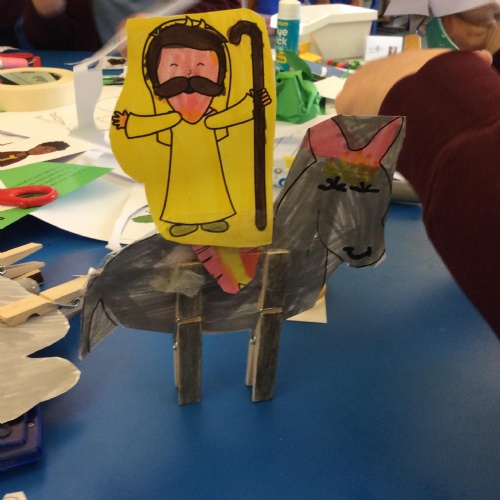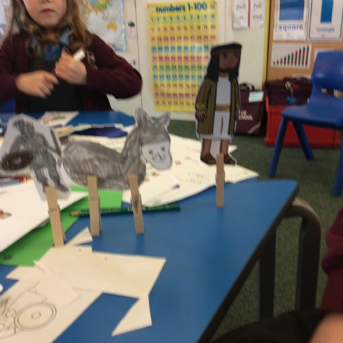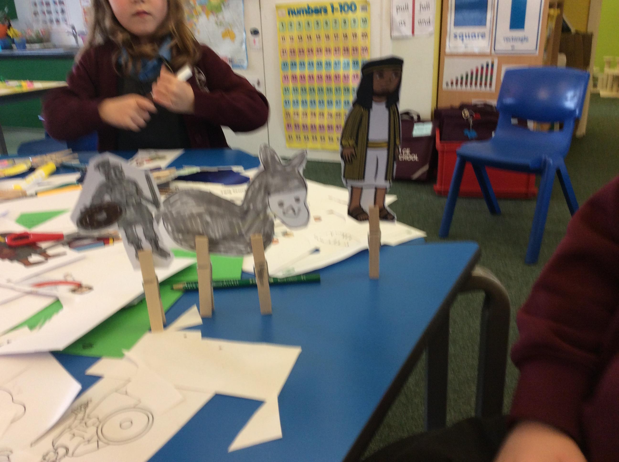 The children experimented with creating crosses and building crosses with duplicate and made characters from the Palm Sunday story.