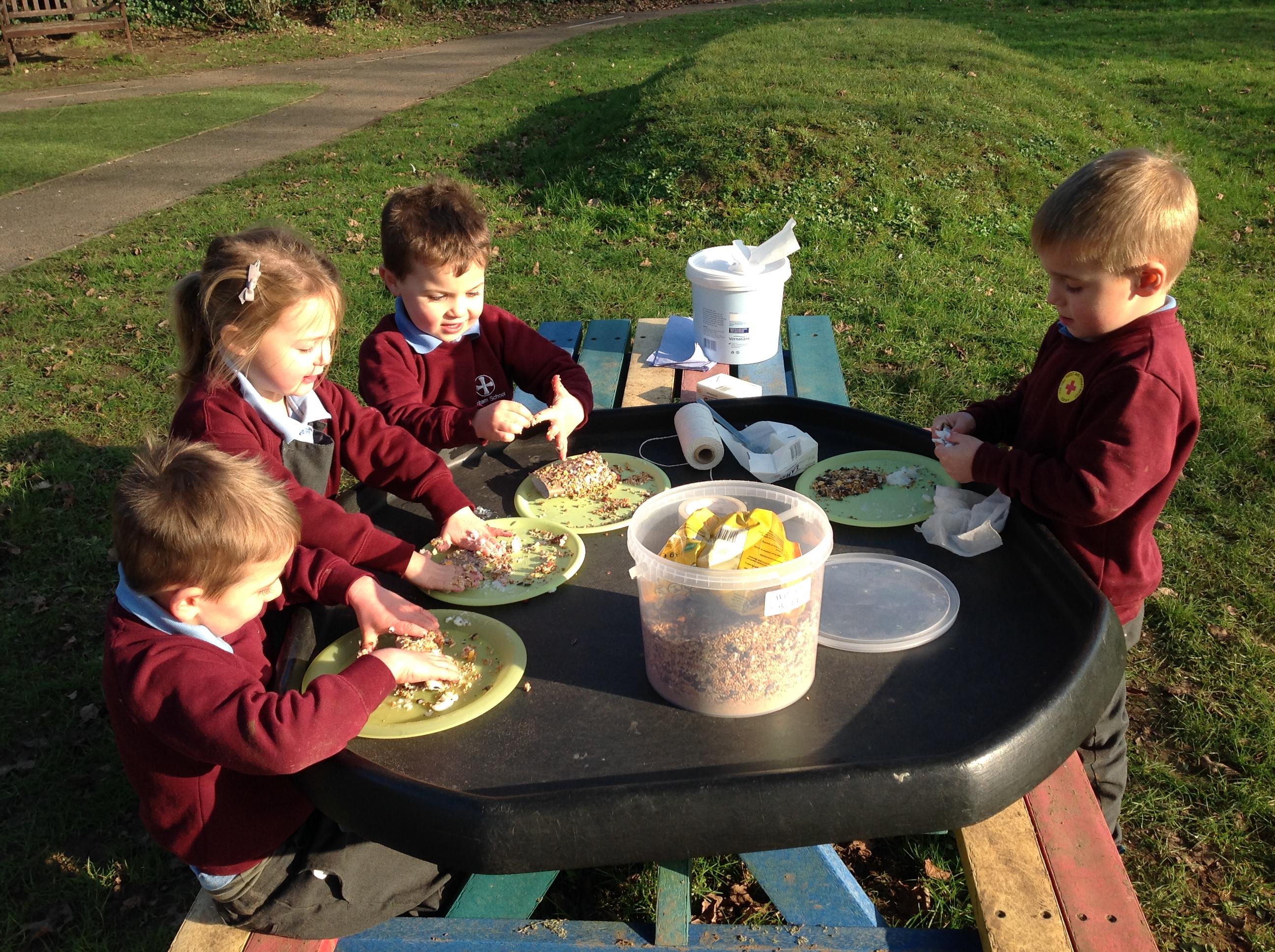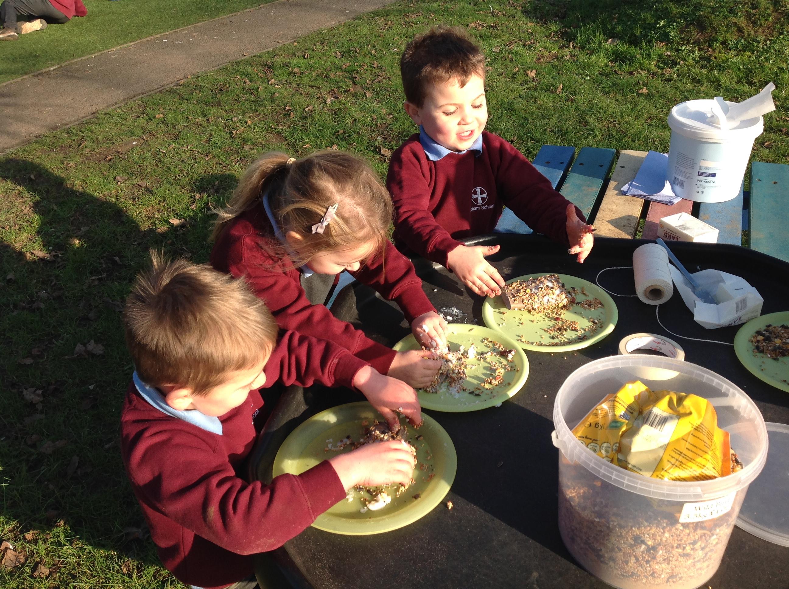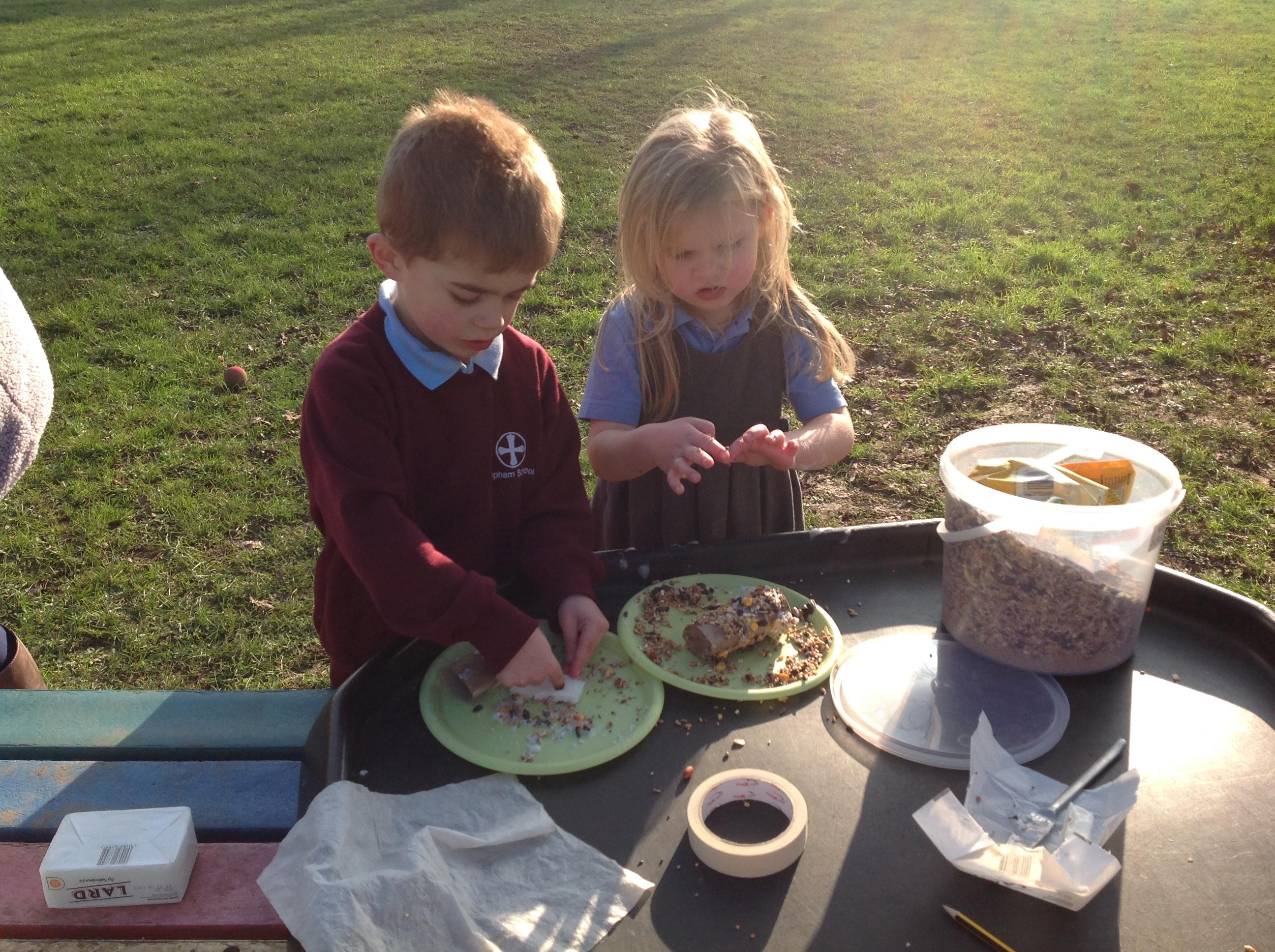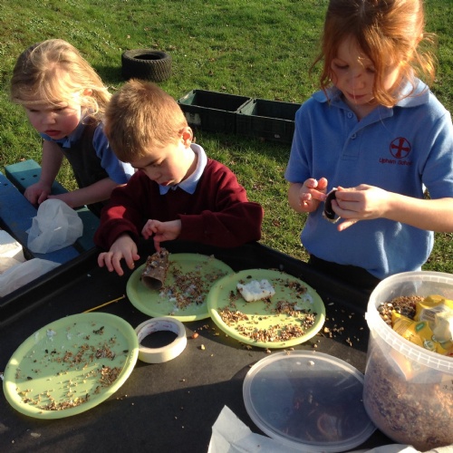 The children have been finding out about different birds in preparation for undertaking The Great School Bird Watch. We made some bird feeders and hung them in our garden to encourage birds to visit.