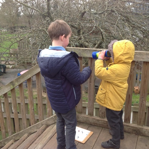The children enjoyed their birdwatch and saw crows, chaffinches, a bluetit, blackbirds and 3 small birds very high up which we couldn't identify.