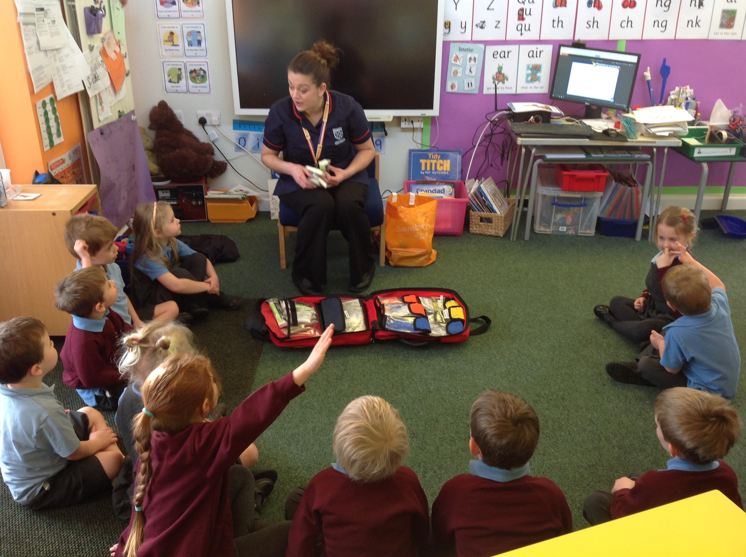 The children have been learning about the emergency services and we were very lucky to have a nurse and a police officer visit us and show us some of the equipment they use in their roles and answer the children's questions.