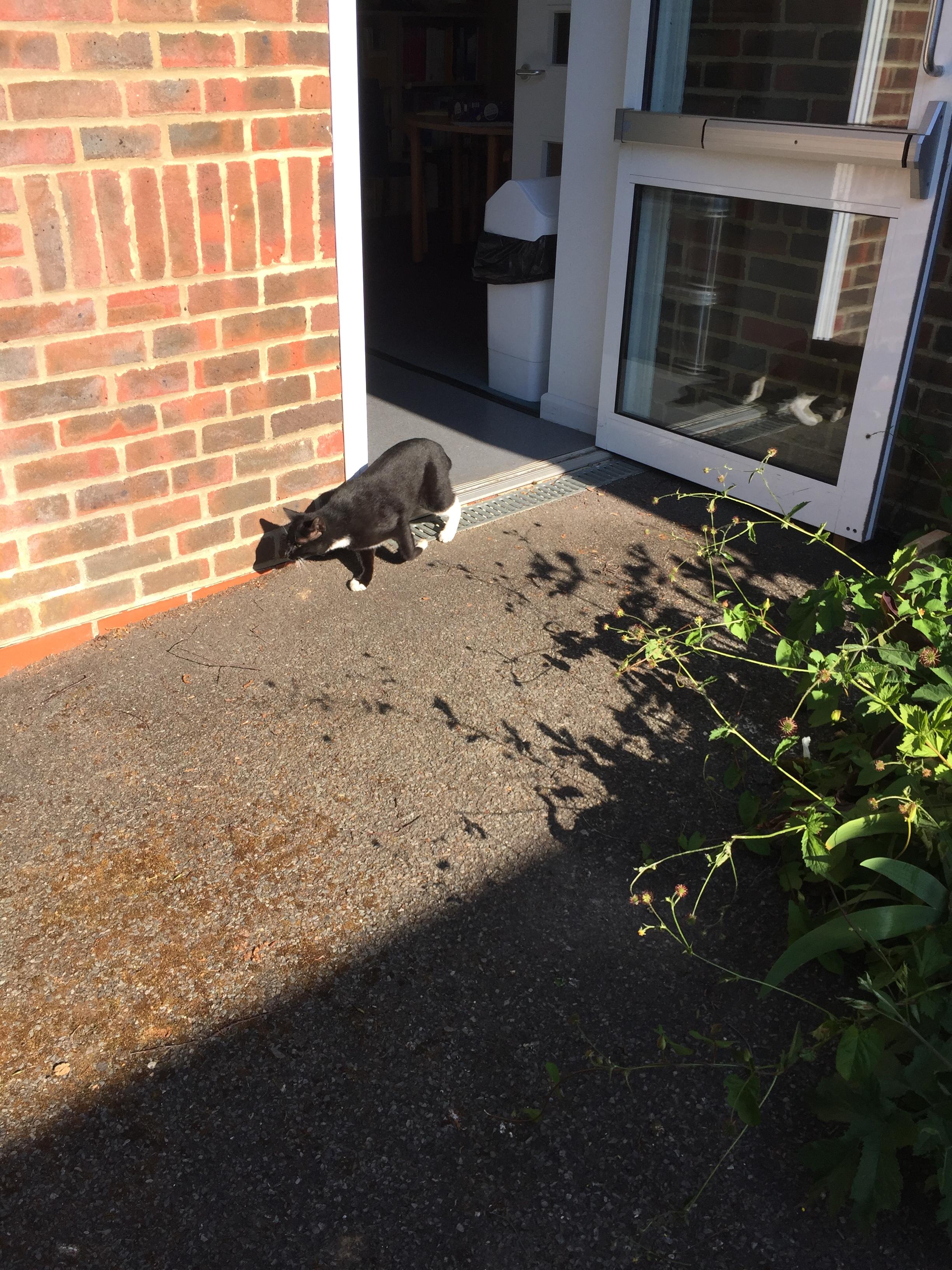 I had a surprise when I came into the classroom just now. There was a black and white cat walking through into the quiet area. When he saw me, he rushed out and into the staffroom! I got a photo of him coming out of there! A very cheeky cat!