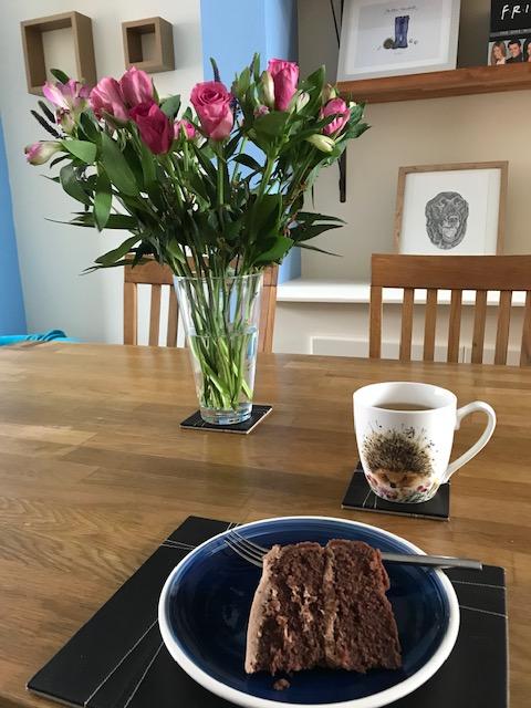 On Sunday, I was feeling much better, so I went for a long walk and dropped some cakes off to my friends on their doorsteps. Mrs Soley very kindly left some chocolate cake and beautiful flowers on her doorstep for me to pick up which was a lovely surprise. When I got home, I had the cake with a cup of tea and put the flowers in a vase on my table. I spent the afternoon planning the learning ready for this week.