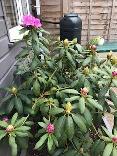 Hope you all had a good weekend despite the weather. It was a bit grim on Sunday wasn’t it. I am continuing to get out and about for a walk when I can, no bike rides at the moment but hopefully they will return. As you can see from my photos, my rhododendron has finally decided to flower and with a bit of sun should bloom nicely this week. There are lots of buds just bursting out.