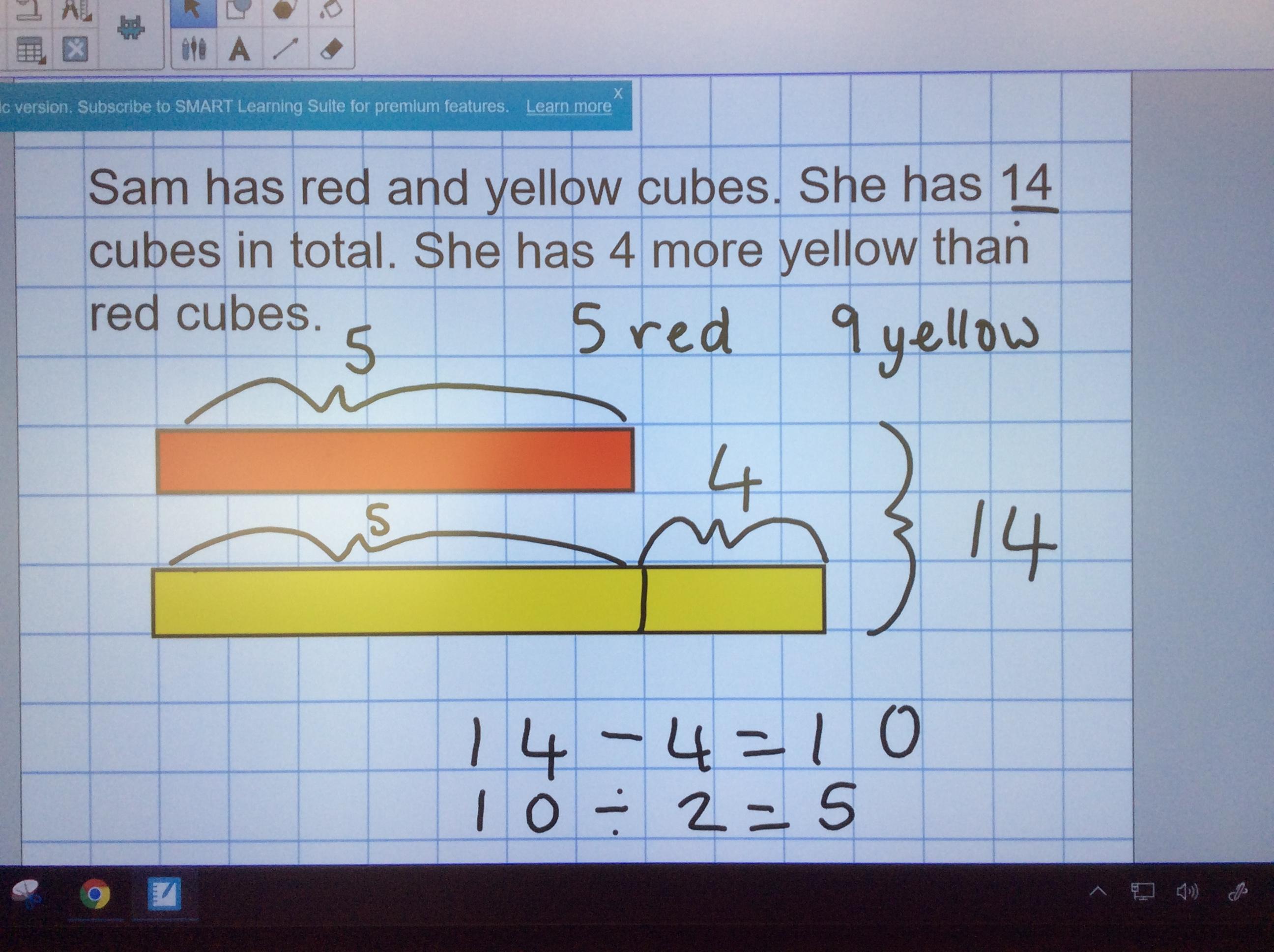 I have done an example question using a bar model in the picture above which is similar to question 1 (same question different numbers) to remind you how to use bar models to solve these types of questions.