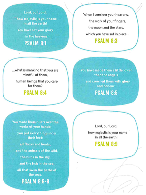 The Bible extract comes from a book called Psalms. It is Psalm Number 8. Do you know what a Psalm is?