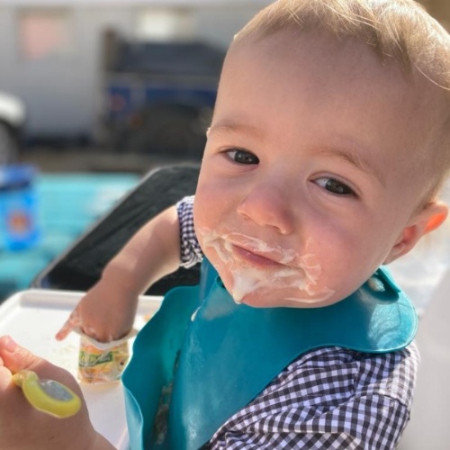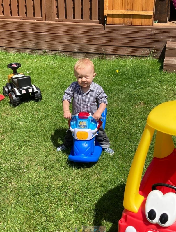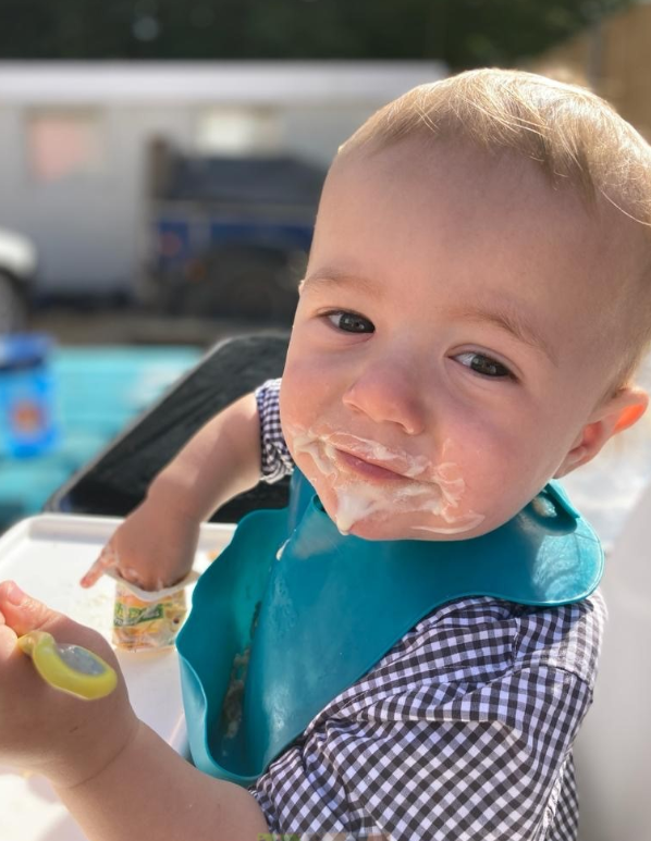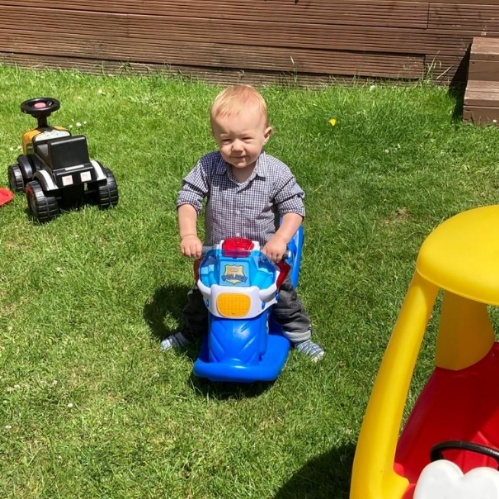 On Saturday, we had a lovely time in Smyth’s toys in Hedge End. We bought a few more small toys for Jacob’s toy box at our house and some garden toys for our great nephew who will be 5 very soon. After that, we went to Hannah’s for some lunch in the garden as it is her birthday today. As you can see from my photos, Jacob sat on his rocker that we bought for his birthday back in May. He seems to like it now although his mummy said he had cried when she tried to put him on it. Jacob had his lunch and tea in the garden. I particularly like the photo of the yogurty face that Mr Soley took, it looks like he has a goatee beard.