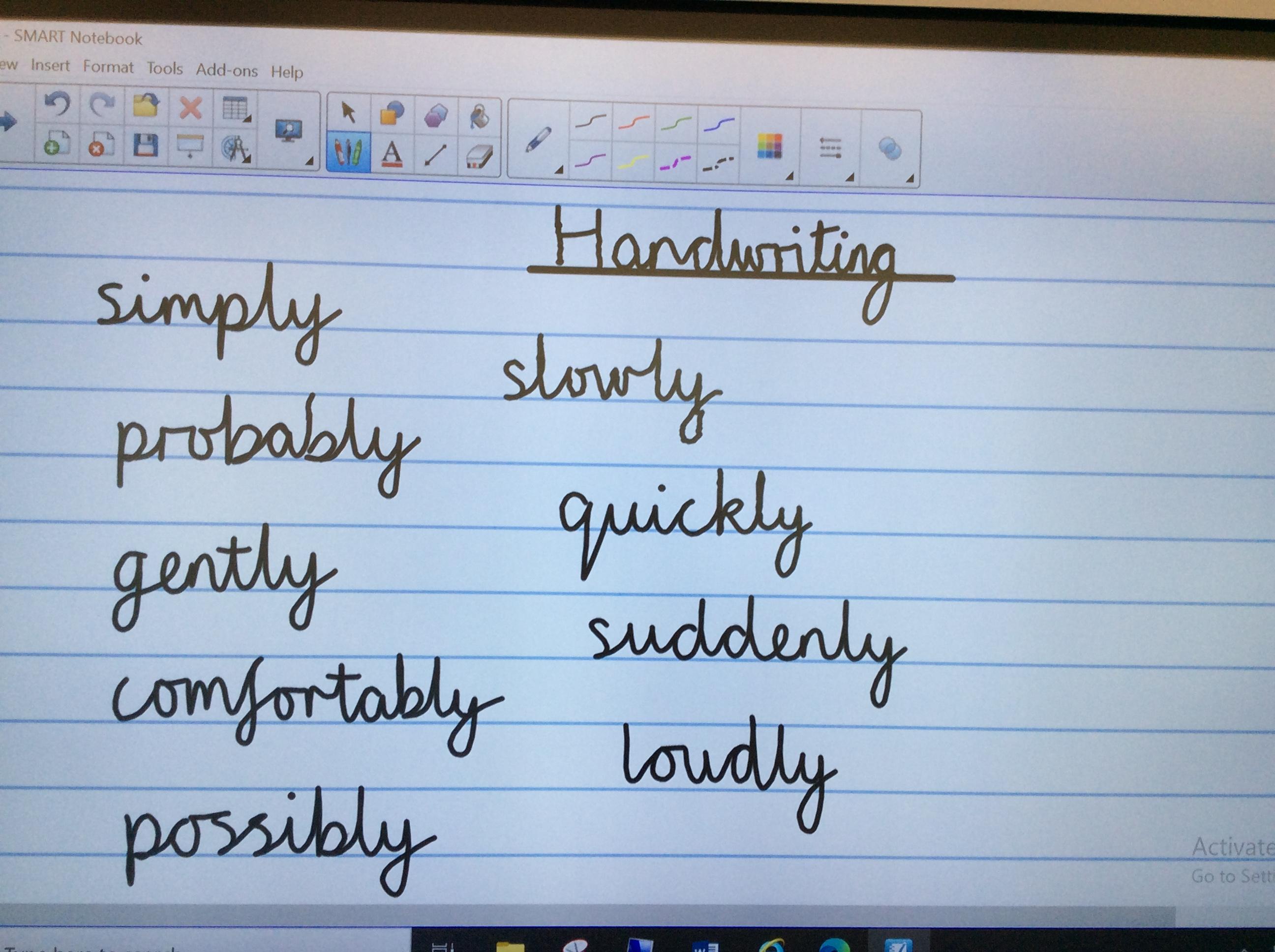 Copy the adverbs on the picture below carefully, remembering to join all your letters correctly. Copy each word 3 or 4 times, making sure you take time to form each letter the right way.