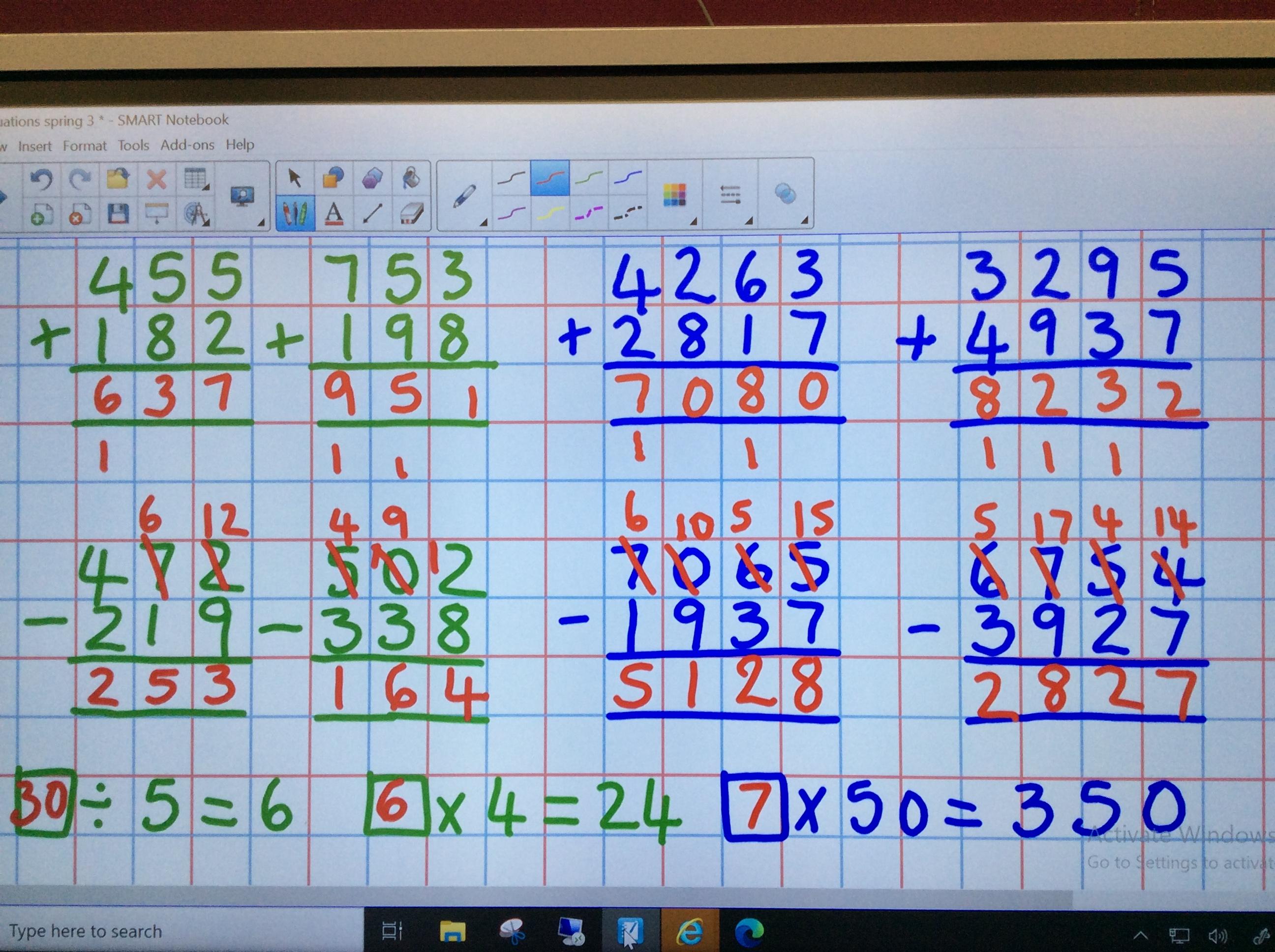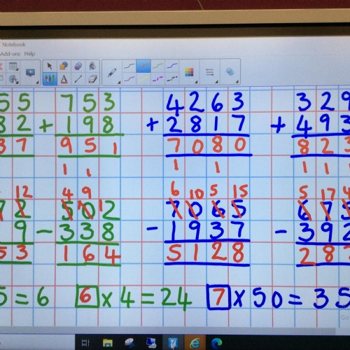 Start the lesson by doing the board calculations. Remember to check your work and try to do any corrections if you have made any mistakes.