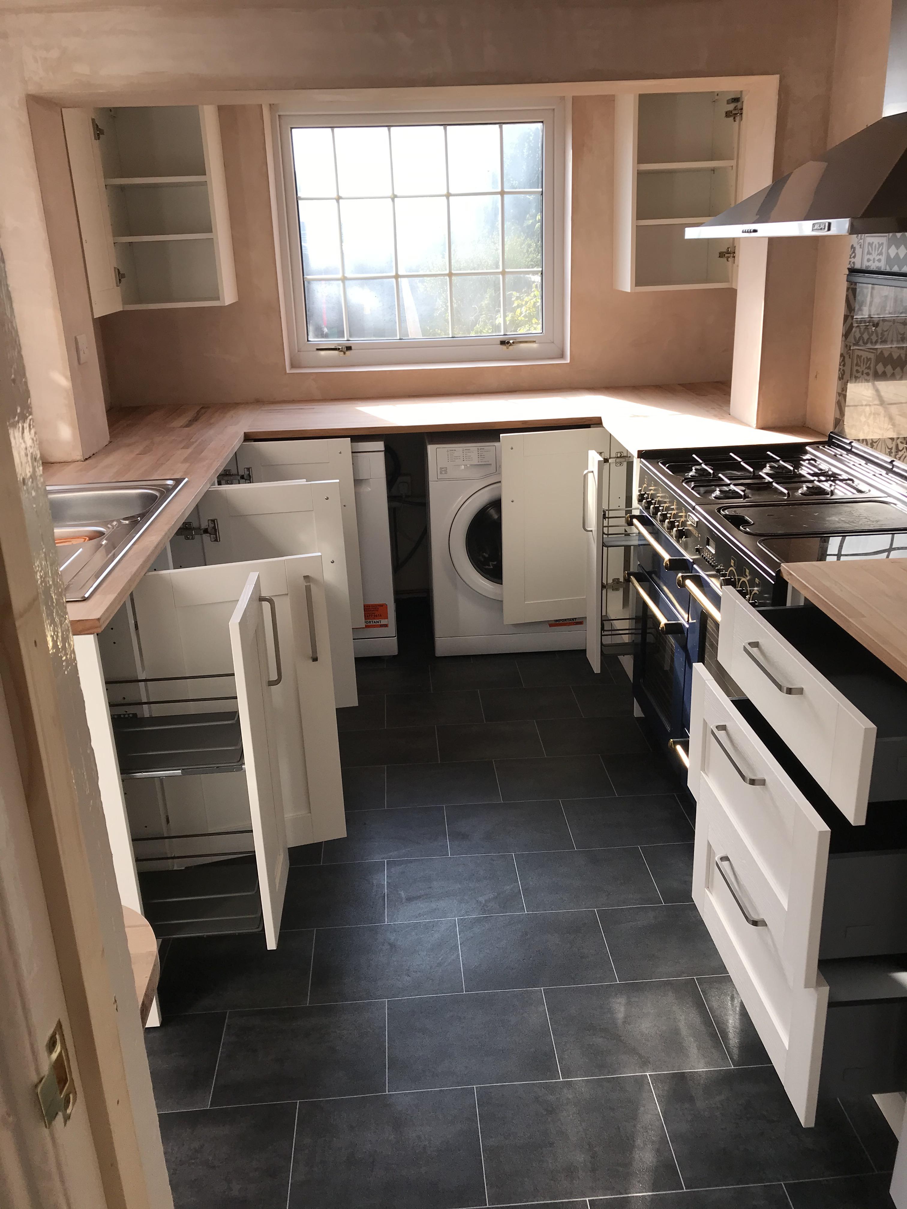 Yesterday I spent the day in the kitchen. I had the new kitchen fitted about 3 weeks ago, just before lockdown, and I haven't got round to cleaning and sorting it. All the walls have been plastered - but when you have new plaster, sometimes it's a bit bumpy in places, so I started yesterday by sanding down all the walls. It was disgusting, I had to wear safety goggles and a mask, and when I finished, it looked like I'd been snowed on, there was plaster dust everywhere! So I had a shower and then spent the rest of the day cleaning up the mess! All the cupboards are cleaned out now though so I am ready to start unpacking which is very exciting. The worktops are made of real wood, so today I have to clean and oil them ready to use so they are protected. Hoping to get that and some unpacking done today whilst also having some time out in the sunshine.