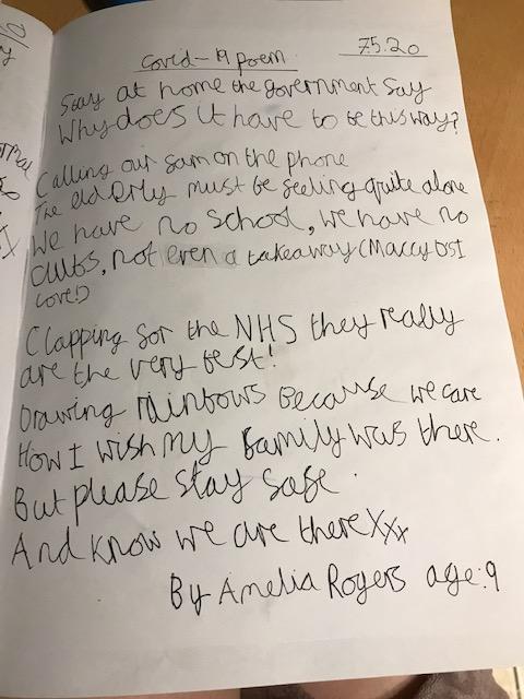 Amelia has written a fantastic poem sharing her experience of the Coronavirus lockdown which I wanted to share with you.
