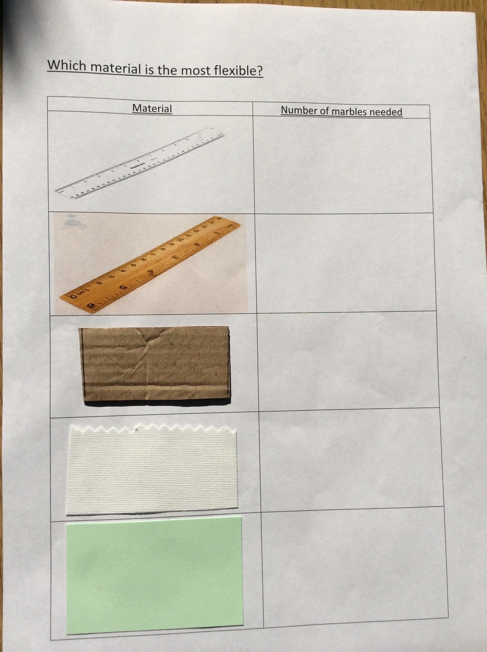 Look at the materials you have collected. Without touching them, can you predict which is the most rigid ad which is the most flexible?