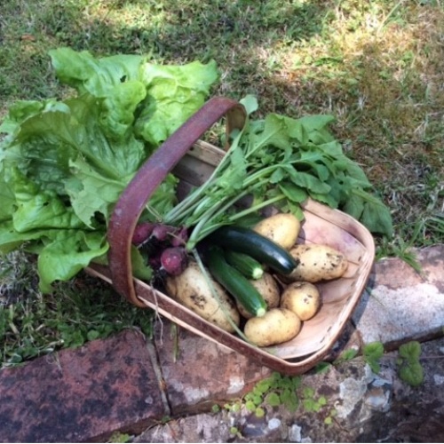 I’m so pleased the weather has changed and we can have some lovely sunny days and enjoy being outside as much as possible. Sunshine certainly brightens my spirits and I can relax for a while now our plants have had a good drink of rain. This week we have really enjoyed eating produce from the vegetable patch: lettuce, spinach, radishes, courgettes and new potatoes. The peas are almost ready, too. Tomorrow, I intend to pick some soft fruit: blackcurrants and gooseberries and I think I spotted some raspberries ripe enough to pick. I’ll freeze most of them but find some new recipes to try as well. I really love gooseberry s and elderflower sorbet so I’ll certainly make some of that.