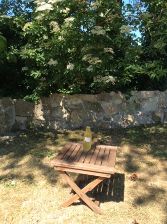 The elder tree in our garden is full of flowers so last week I had a go at making elderflower cordial and I’m very pleased with the results. (see the picture of a bottle under the elder tree.) It is delicious in a cold glass of soda water or sparkling water and it makes a very good sorbet, too.